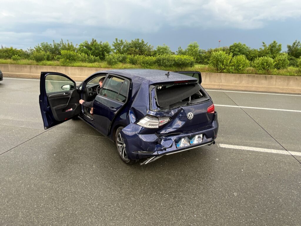 Nach ersten Erkenntnissen kam es durch unangepasste Geschwindigkeit heute früh zu einem Unfall auf der A9 Höhe Triptis mit drei beteiligten Fahrzeugen. Ein 56-jähriger Fahrer eines Mercedes Vito erkannte bei zu hoher Geschwindigkeit und starkem Regen den vor ihm fahrenden VW Golf einer 36-Jährigen zu spät und fuhr auf diesen auf. Durch den Zusammenstoß begann der Golf zu schleudern und kollidierte mit einem auf gleicher Höhe fahrenden Toyota Corolla. Der 52-jährige Fahrer des Toyotas und der Unfallverursacher blieben unverletzt. Die Fahrerin des VWs wurde hingegen schwer verletzt. Es entstand ein Gesamtschaden von 21.000 EUR.