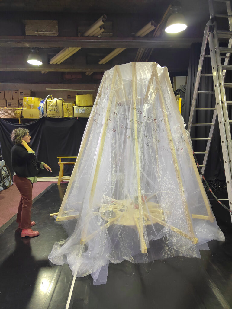 Der Umzug trägt den Namen „Lilit“ und verbindet Orte des jüdischen Lebens: Hierfür hat Adi Liraz ein 2,50 Meter hohes Kunstwerk geschaffen, in dem Mythen, biblische Erzählungen, Elemente aus der Kabbala – der mystischen Tradition des Judentums also – miteinander verwoben sind. Entstanden ist so eine Spinne, die einen Schleier aus Tüll und Organza trägt, auf dem Teile des Hohelieds geschrieben sind. Gezogen wird das Wesen an zehn roten Seilen, die sich symbolisch auf die Kabbala beziehen und letztlich für die Fülle und Kraft des Vollkommenen stehen. Wie dies alles mit den Orten jüdischen Lebens in Gotha in Bezug steht, wird am Sonntag offenbar. Es wird um die ehemalige Mikwe gehen, die sich am heutigen Augustinerkloster befand, um Wasser, das Staub wegwischt und darunter Liegendes wieder sichtbar macht.