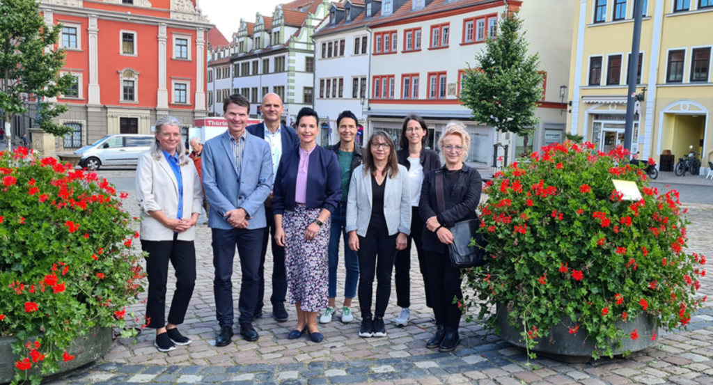 Im Bild v.l.n.r.: Cornelia Sebastian (TAG Wohnen und Service GmbH, Gotha), Detlef Mölter (Stadtwerke Gotha NETZ GmbH, Gotha), Ulf Zillmann (Bürgermeister, Gotha), Daniela Dammeyer (Autohaus Rainer Seyfarth GmbH & Co. KG, Gotha und Automobile Am Mönchhof GmbH, Gotha), Claudia Heß (Gartenamtsleiterin, Gotha), Christine Grund (Baugesellschaft Gotha mbH, Gotha), Dana Hellmann (Stadtwerke Gotha, Gotha) und Carla Bittorf (Sachbearbeiterin im Gartenamt, Gotha) © Stadtverwaltung Gotha