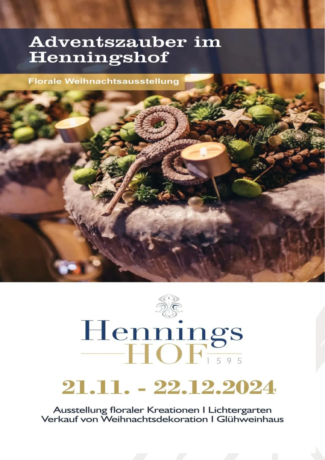 Der Advent steht vor der Tür, und mit ihm erstrahlt der historische Henningshof in festlichem Glanz. Wir laden Sie herzlich ein, gemeinsam mit uns in den weihnachtlichen Zauber einzutauchen und eine unvergessliche Auszeit vom Alltag zu genießen.