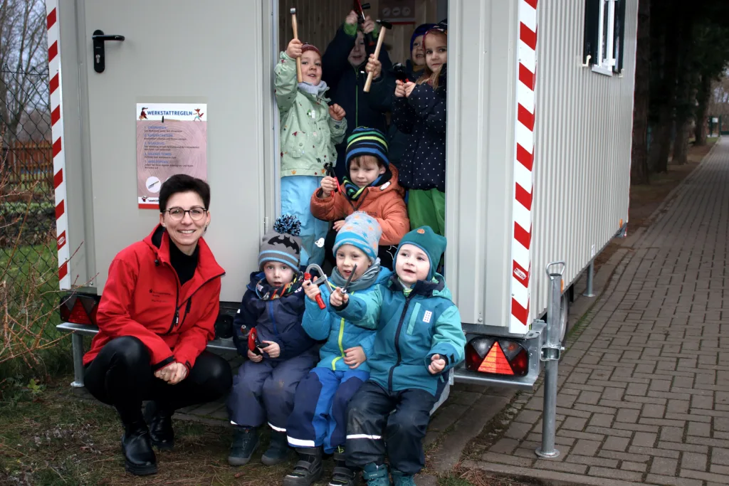 „Unsere Räume in der KiTa geben es nicht her, eine eigene Werkstatt einzurichten. Bislang mussten die Kinder immer unfertige Werkstücke und das Werkzeug beiseite räumen und später wieder hervorholen, um die Arbeiten fortzusetzen. Deshalb reifte bei uns die Idee, einen Bauwagen mit entsprechender Werkstatteinrichtung zu beschaffen und so die Kinder spielerisch an handwerkliche Arbeiten heranzuführen“, erläuterte Ina Kornhaas, Erzieherin und Teamleiterin in der KiTa „Dreikäsehoch“. Beim Sichten von Angeboten landete man bei 14.000 Euro. Zur Finanzierung wurde durch die Kinder und Erzieher ein Spendenlauf organisiert, bei dem 3.300 Euro erlaufen wurden. Durch Spenden, die der Förderverein erhielt, kamen nochmal 4.000 Euro zusammen. Da das Geld noch nicht reichte den Wunsch zu erfüllen, wandte man sich an die Regionalstiftung der Kreissparkasse Gotha. Nach einem vor Ort Termin mit dem Vorstandsvorsitzenden Jörg Krieglstein, gab es grünes Licht. Die Regionalstiftung der Kreissparkasse Gotha übernahm den fehlenden Betrag i.H.v. 7.000 Euro.