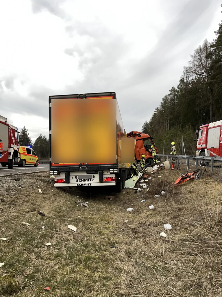 Grund dafür ist ein Verkehrsunfall zwischen zwei Lkw. Der 73-jährige Fahrer eines Sattelzuges übersah aus bisher ungeklärter Ursache einen Pannen-Lkw auf dem Standstreifen, sodass es zur seitlichen Kollision beider Fahrzeuge kam. In der weiteren Folge kam der Sattelzug nach rechts von der Fahrbahn ab, durchfuhr den angrenzenden Straßengraben und durchbrach einen Wildschutzzaun. Der 73-Jährige wurde hierbei leicht verletzt. Der 48-jährige Fahrer des Pannen-Lkw auf dem Standstreifen blieb unverletzt.