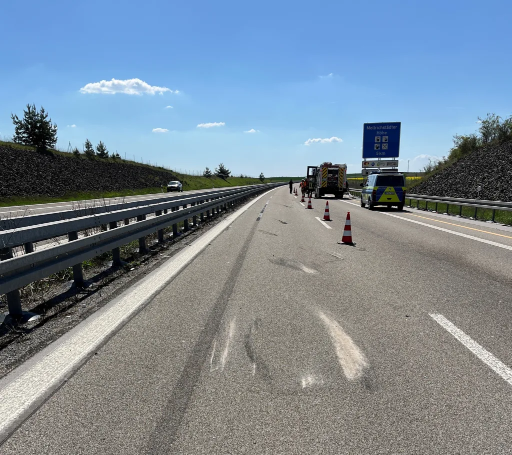 Schwerer Unfall auf der A71 bei Rentwertshausen: Zwei Verletzte nach Kollision mit Wohnmobil