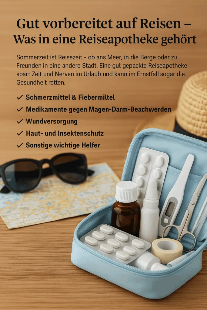 Sommerzeit ist Reisezeit – ob ans Meer, in die Berge oder einfach zu Freunden in eine andere Stadt. Doch egal, wohin die Reise geht: Wer unterwegs krank wird, möchte nicht erst lange nach einer Apotheke suchen oder auf gut Glück hoffen, dass am Urlaubsort alles verfügbar ist. Eine gut gepackte Reiseapotheke spart Zeit, Nerven – und im Ernstfall sogar Gesundheit.