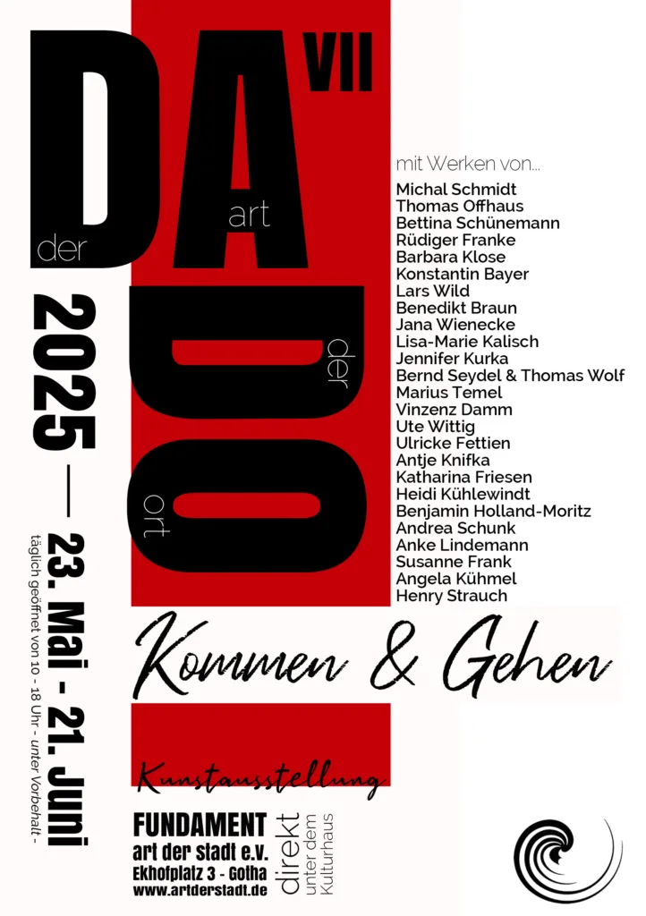 Die Ausstellung lädt dazu ein, den Wandel in der Kunst und Kultur zu reflektieren und die Perspektiven derjenigen zu betrachten, die gehen, kommen und bleiben. Die Veranstaltung findet im „Fundament“ im Kulturhaus Gotha statt. Geboten wird ein abwechslungsreiches Programm mit Ausstellungen, Performances und Diskussionsrunden. Weitere Informationen und Programmdetails findet man auf der Internetseite www.artderstadt.de. Die Ausstellung ist noch bis zum 21. Juni (meistens) täglich von 10 bis 18 Uhr geöffnet.