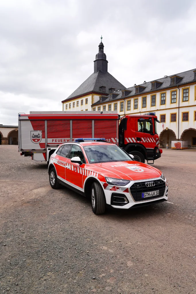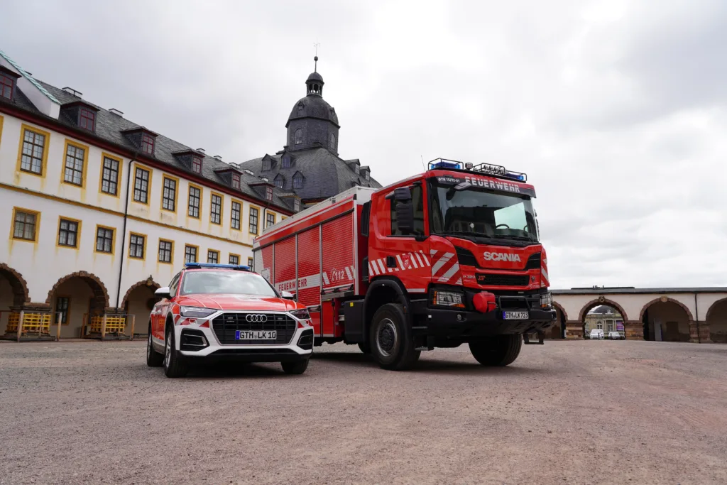 Die Feuerwehreinsatzfahrzeuge in Trägerschaft des Landkreises Gotha erhalten ein einheitliches und modernes Design. Im Mittelpunkt steht dabei vor allem die Sichtbarkeit der Wagen, zugleich aber auch eine klare Zuordnung. Die ersten beiden Fahrzeuge im neuen Look sind kürzlich präsentiert worden. Dabei handelt es sich um einen Kommandowagen der Kreisbrandinspektion und einen Rüstwagen, der am Standort der Freiwilligen Feuerwehr Nesse-Apfelstädt im Ortsteil Neudietendorf stationiert ist. Diese Feuerwehr ist eine der fünf Stützpunktfeuerwehren im Landkreis Gotha. Ihr Rüstwagen wurde nach der Reparatur eines Unfallschadens neu foliert.