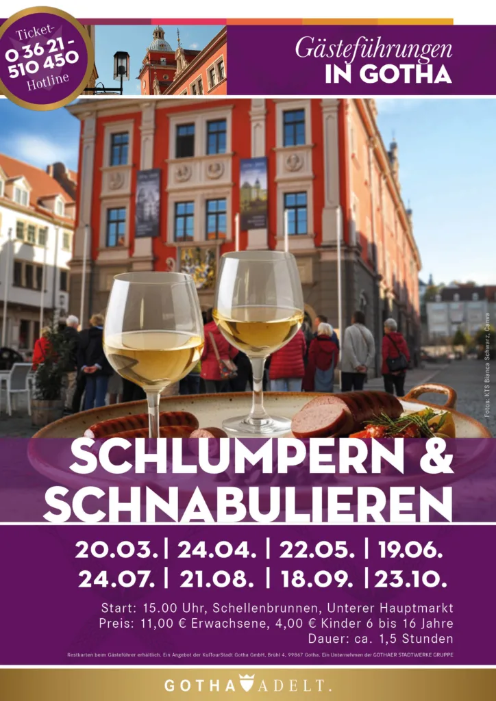 Erleben Sie Gotha mit allen Sinnen! Auf einem genussvollen Spaziergang über die drei historischen Märkte erfahren Sie spannende Anekdoten zur Stadtgeschichte und zur Architektur der prachtvollen Häuser.