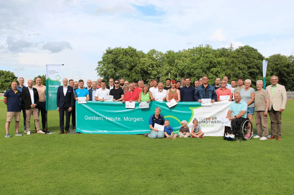 GOTHA. Ein guter Tag für den regionalen Sport: Insgesamt 29 Sportvereine aus Gotha und Umgebung haben am Montag (23. Juni) symbolisch Fördermittel in einer Gesamthöhe von nahezu 45.000 Euro von der Stadtwerke Sportstiftung Gotha erhalten. Die symbolischen Schecks wurden im Rahmen einer Veranstaltung im Volkspark-Stadion Gotha übergeben. Knut Kreuch, Oberbürgermeister der Stadt Gotha und Vorstandsvorsitzender der Stadtwerke Sportstiftung Gotha, hat zusammen mit den beiden Vorstandsmitgliedern Sven Anders, Geschäftsführer der Gothaer Stadtwerke Energie GmbH, und Dr. Andreas Roß, Vorstandsmitglied der Thüringer Energie AG, die Schecks an die Vertretenden der sportlichen Einrichtungen überreicht.