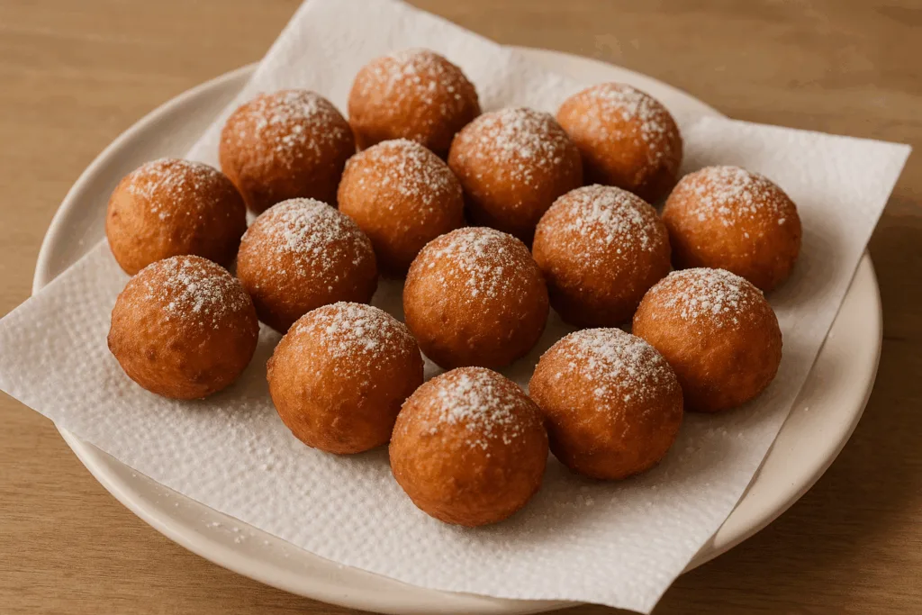 Mit zwei Teelöffeln formte man kleine Nocken oder Kugeln aus dem Teig und ließ sie vorsichtig ins heiße Öl gleiten. Wichtig: Nicht zu viele auf einmal – sie brauchen Platz zum Aufgehen und Wenden.