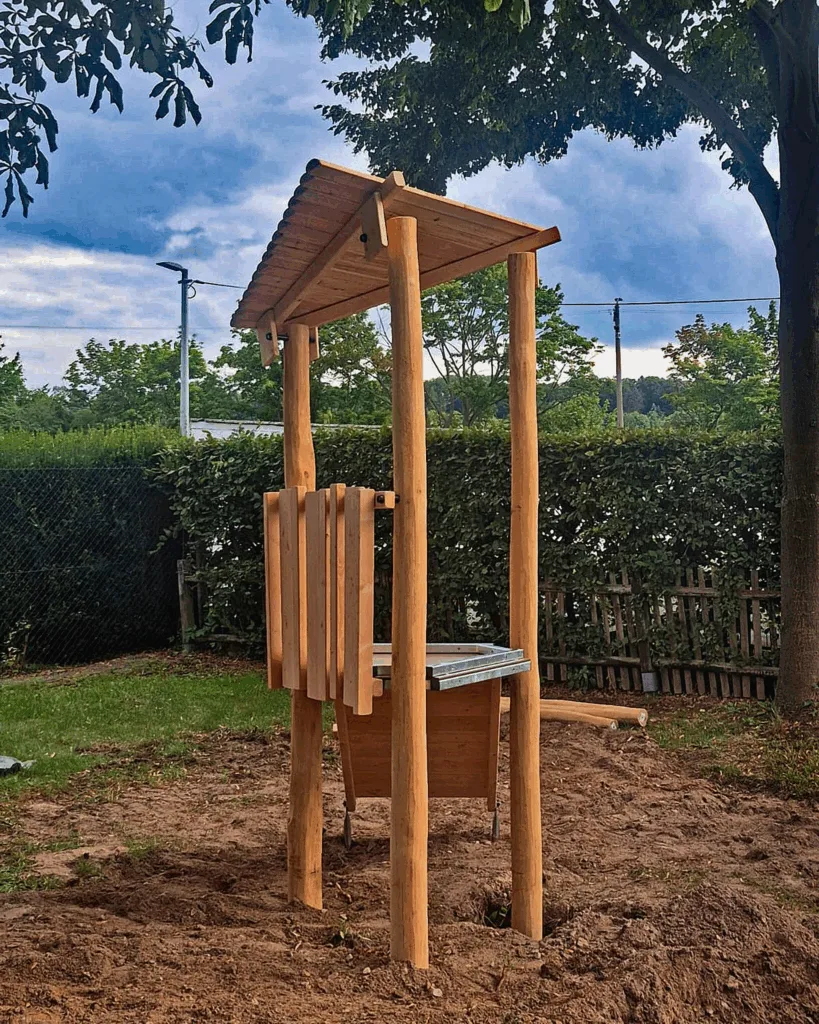 Der Spielplatz gegenüber dem Gemeinschaftshaus soll somit wieder an Spielwert hinzugewinnen. Die dabei verwendeten Robinienstämme sind aufgrund ihrer natürlichen Eigenschaften resistent gegen Fäulnis und Pilzbefall. Das Spielgerät der Firma Proludic wird durch den zertifizierten Spielplatzbauer „Gartenbau Franz“ aufgestellt. Insgesamt wird dafür eine Summe von rund 20.000 Euro aufgebracht.