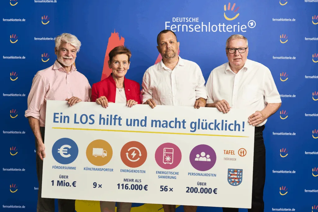 Die Soforthilfe der DEUTSCHEN FERNSEHLOTTERIE hat gezielt die Infrastruktur der Tafelangebote gestärkt. Im Freistaat Thüringen konnten 22 der insgesamt 34 Tafeln des Landesverbandes Tafel Thüringen e.V. mit einem Gesamtvolumen von über 1.000.000 Euro von dieser Unterstützung profitieren. Damit konnten unter anderem 9 neue Kühltransporter angeschafft, 56 energiesparende Kühlgeräte und energetische Sanierungsmaßnahmen (z. B. Kühlzellen, PV-Anlagen oder Küchenausstattung) ermöglicht, über 116.000 Euro Energiekostenzuschuss bereitgestellt sowie temporär anfallende Personalkosten in Höhe von 200.000 Euro abfangen werden. Dadurch wurde die Arbeit der Thüringer Tafeln nachhaltig erleichtert und die Versorgung der Bedürftigen gesichert.