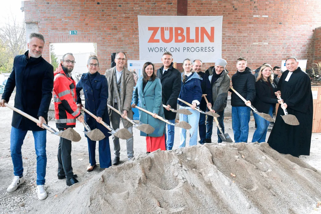 Ein besonderer Moment war das Befüllen einer Zeitkapsel mit den vorbereiteten Losen, den Planungsunterlagen sowie weiteren Zeitzeugnissen der Gäste. Gesponsert wurde die Kapsel von der ausführenden Baufirma Ed. Züblin AG.
