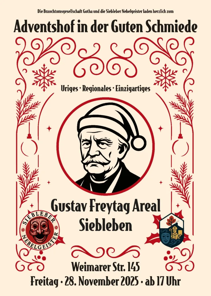 Mit dem Adventshof und Rahmenprogramm „Advent bei Gustav“ wird die „Gute Schmiede“ in diesem Jahr zum Ort des vorweihnachtlichen Miteinanders und zum Treffpunkt für Brauchtum und Kultur in Gotha-Siebleben.