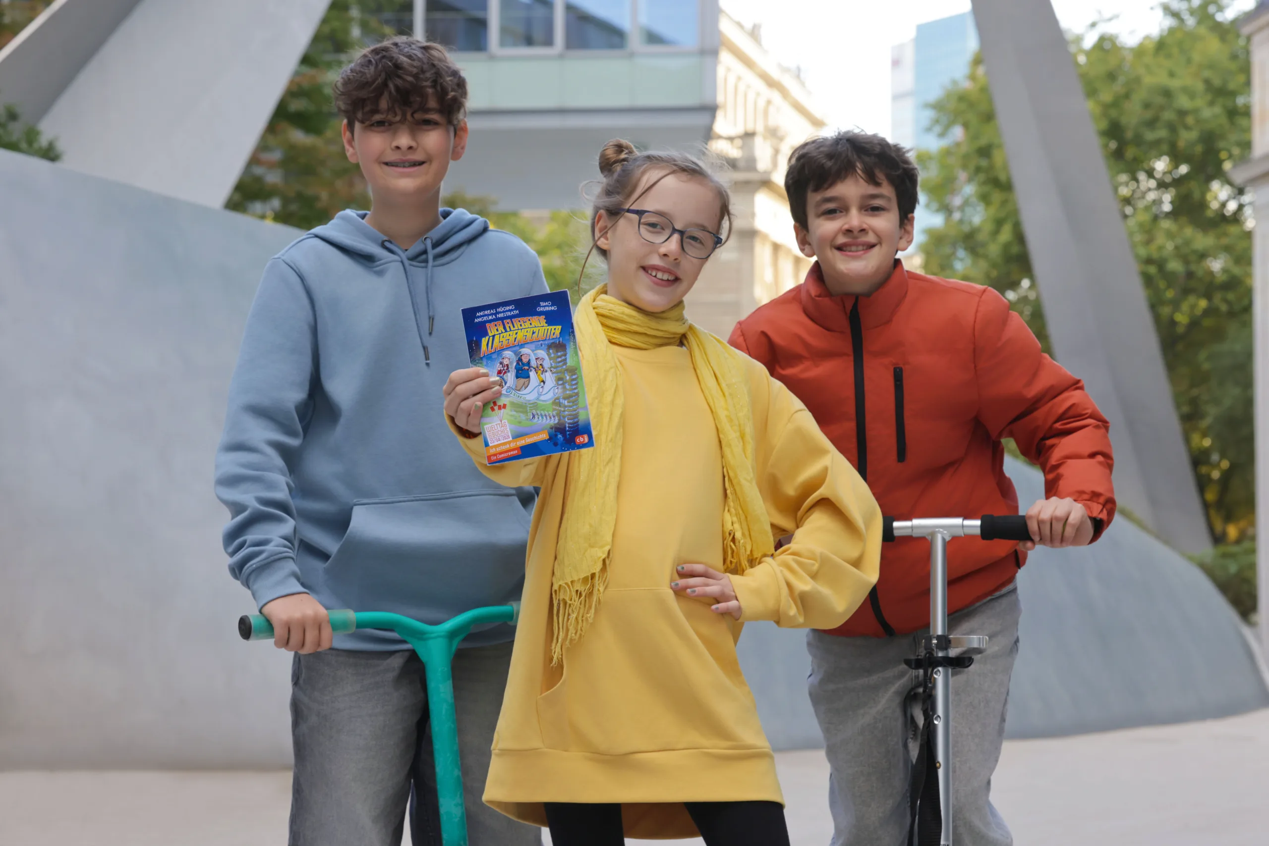 Bei „Der fliegende Klassenscooter“ handelt es sich erneut um einen Comicroman, um die Schulkinder mit einer abwechslungsreichen Mischung aus Text und Illustrationen fürs Lesen zu begeistern. Das Welttagsbuch wird der cbj Verlag wieder nach dem Cradle-to-Cradle-Prinzip herstellen lassen. So können aus den recycelten Papierfasern neue Produkte entstehen, bis alle Bestandteile am Ende in den biologischen Kreislauf zurückfließen. Und darum geht’s im Buch: Lisa, Orhan und Dennis sind beste Freunde: Was sie eint, ist ihre Abneigung gegen alle naturwissenschaftlichen Fächer. Sie sind echte „NaWi-Nieten“. Dann bekommen sie eine ungewöhnliche Hausaufgabe: Sie sollen etwas Nützliches für die Zukunft erfinden. Und erstaunlicherweise macht ihnen das sehr viel Spaß. Kurz danach brechen sie zu einem Ausflug in das örtliche Zukunftsmuseum auf und reisen aus Versehen in das Jahr 2176. Dort begegnet ihnen eine ihrer Erfindungen… Sind sie also doch keine „NaWi-Nieten“?