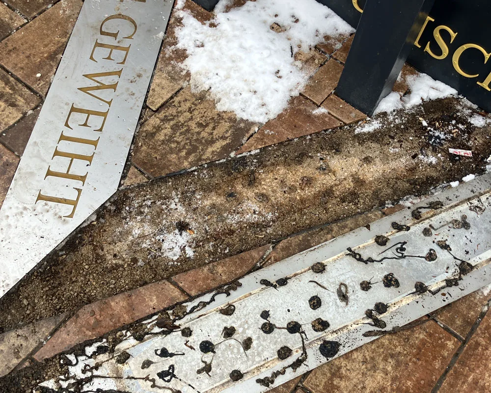 Gotha: Frostschaden am Denkmal zur Erinnerung an die ehemalige jüdische Synagoge