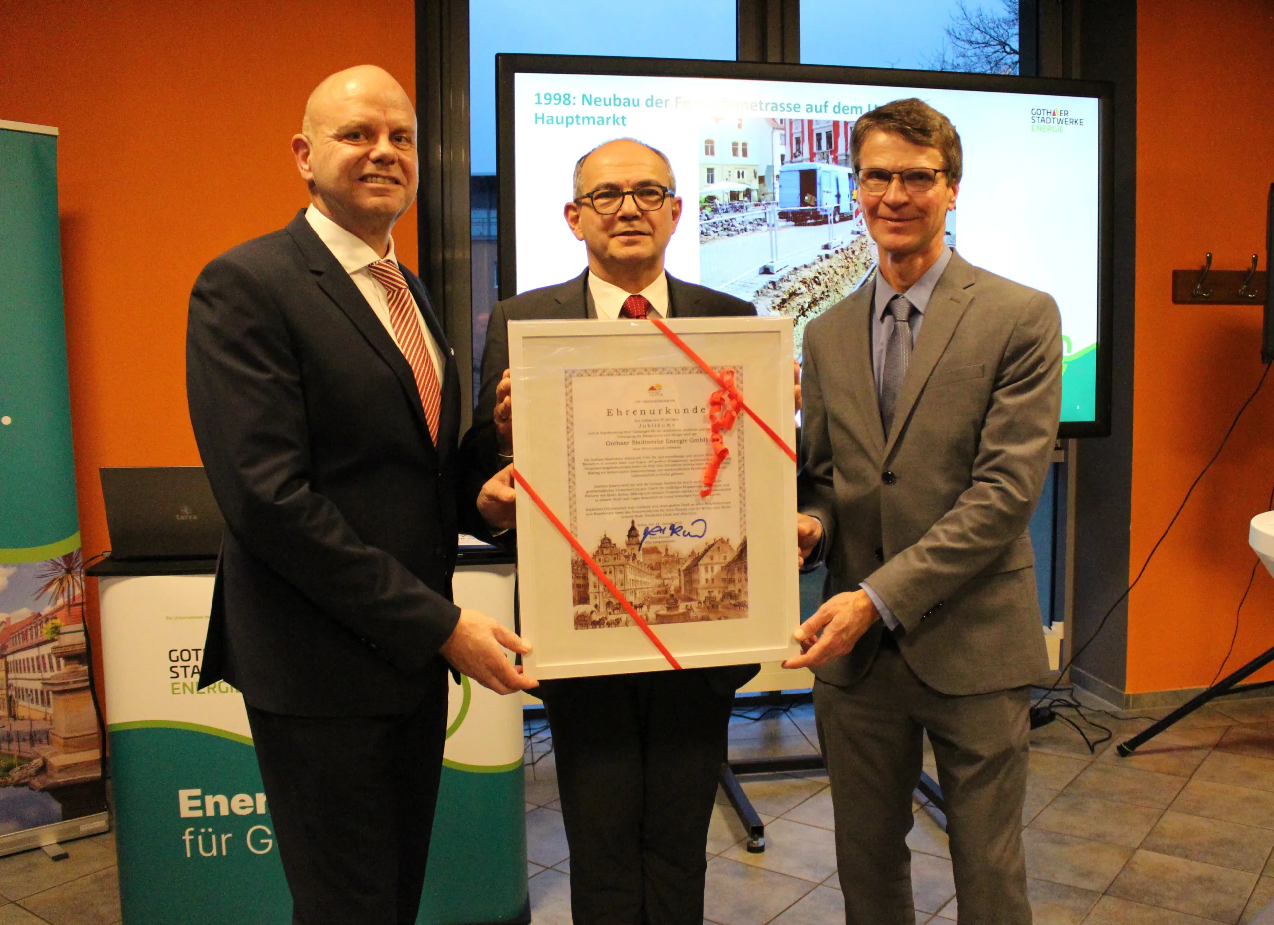 Foto: Übergabe der Ehrenurkunde der Stadt Gotha am 14.01.2026 © Gothaer Stadtwerke ENERGIE