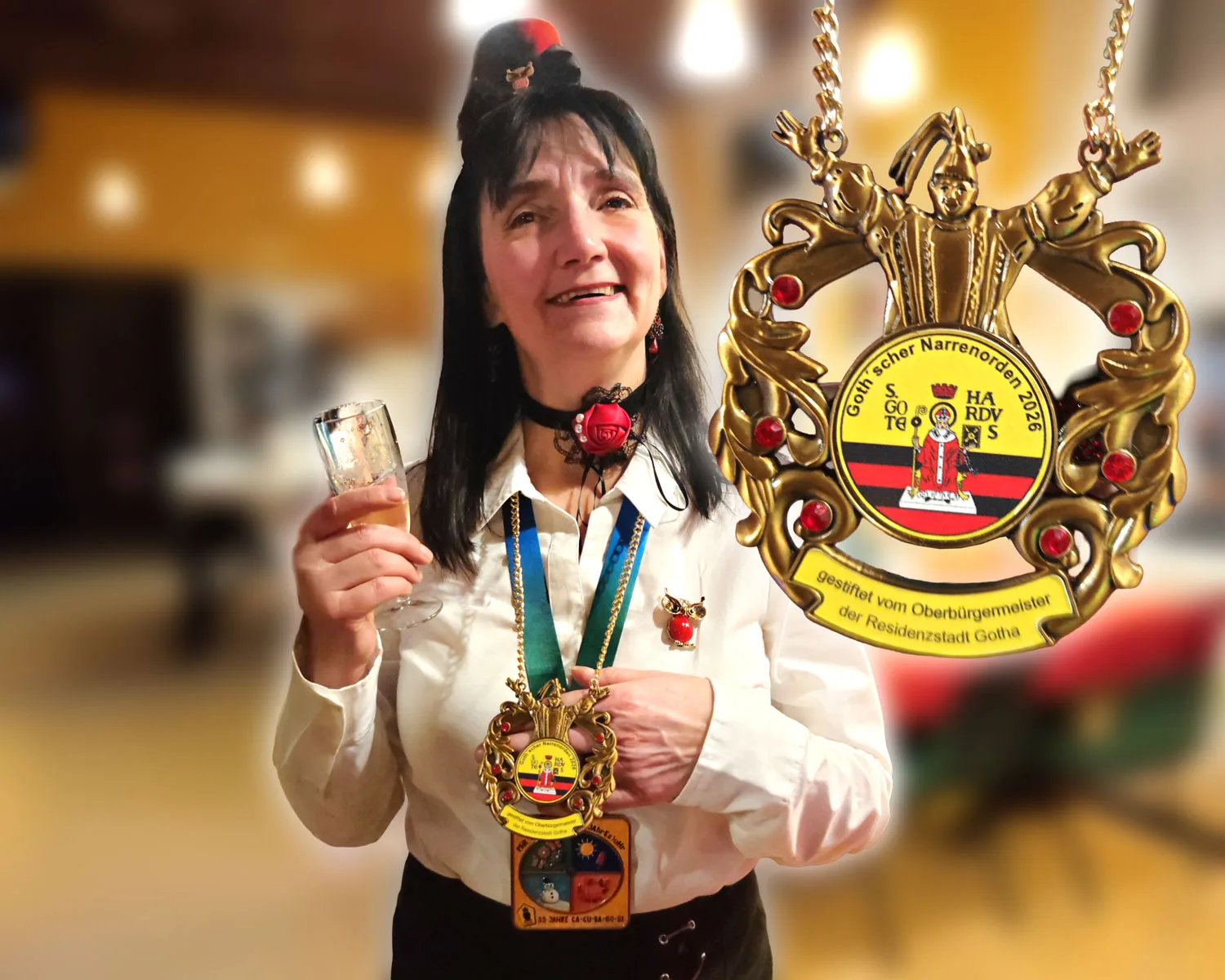 Am vergangenen Freitag wurde Katrin Weisheit mit dem „Goth’schen Narrenorden 2026“ für ihr jahrelanges Engagement im Siebleber Faschingsverein „CaCuBaGoSi“ geehrt. Der Orden wird jedes Jahr traditionell an die „Goth’schen“ Faschingsvereine vom Oberbürgermeister der Stadt Gotha gestiftet.