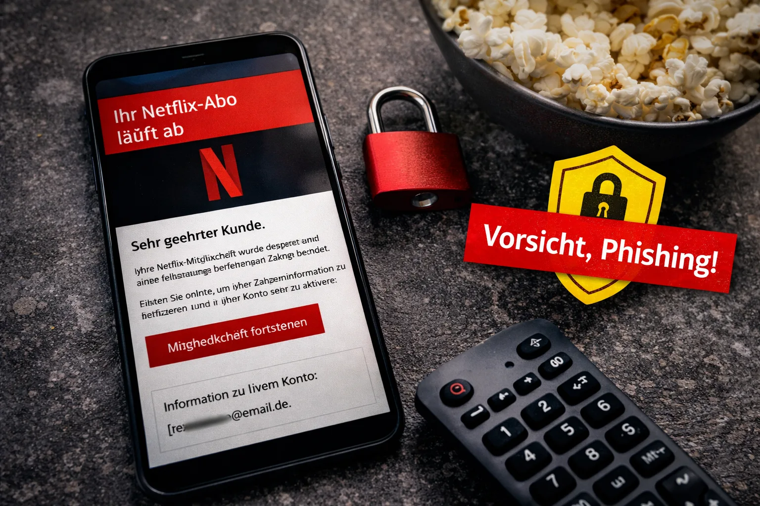 Am 9. Februar 2026 wurden vermehrt E-Mails gemeldet, in denen Empfänger darüber informiert werden, ihr Netflix-Abonnement sei wegen einer fehlgeschlagenen Zahlung beendet worden. Unter Überschriften wie „Ihr Netflix-Abo läuft ab“ wird behauptet, eine Verlängerung sei nicht möglich gewesen und der Zugang werde bald gesperrt.