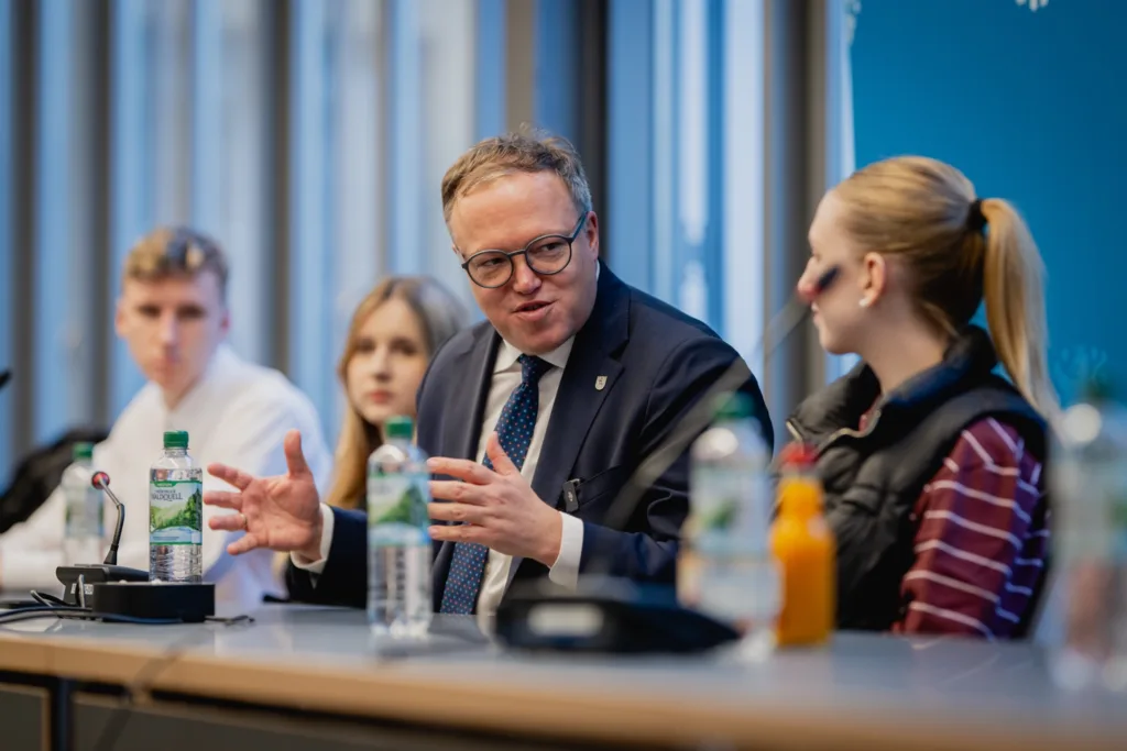 Im Vorfeld hatten die Schülerinnen und Schüler eigenständig Themenschwerpunkte für den Austausch erarbeitet. Im Zentrum standen Fragen zur politischen Teilhabe junger Menschen und zur Attraktivität demokratischer Prozesse für die junge Generation.