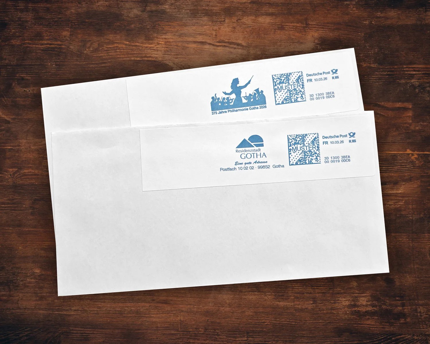 Die Stadtverwaltung Gotha hat im Jahr 2026 neue Poststempel für ihre ausgehende Post eingeführt. Neben dem traditionellen Jahresstempel, der jährlich mit einem besonderen Motiv gestaltet wird, kommt auch ein neuer regulärer Stempel für die Massenpost der Verwaltung zum Einsatz.