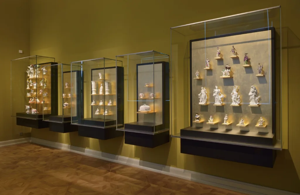 Einige Ausstellungsstücke stammen aus dem Porzellankabinett von Luise Dorothea von Sachsen-Gotha-Altenburg (1710–1767) im Schloss Friedenstein, über das Friedrich der Große in einem Brief an die Herzogin am 10. Januar 1763 schrieb: „Ich erinnere mich, in Gotha ein kleines Porzellan-Heiligtum gesehen zu haben…“. Porzellan aus Meissen bildete den Sammlungsschwerpunkt der aufgeklärten, kunstliebenden Herzogin. Sie hatte, dem Geschmack der Zeit entsprechend, eine Vorliebe für figürliche Porzellane, z.B. Marktleute, Schäfer, Musizierende, Theaterfiguren, Tiere und sogar Gefäße in Tierform. Zahlreiche Stücke gehen auf Entwürfe des berühmten Modelleurs Johann Joachim Kaendler, Hofbildhauer von August dem Starken, zurück.